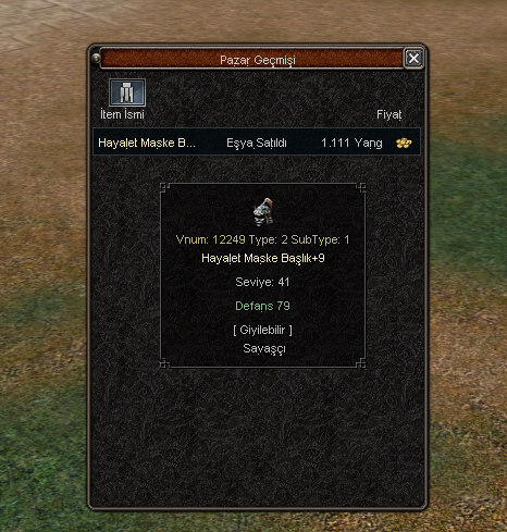 Pazarda eşyanız satıldığında eşyanın satıldığına dair bildirim penceresi açılır