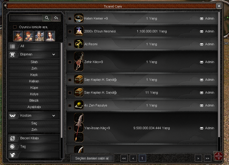 * Tüm ch maplerden item aratılıp toplu şekilde satın alınabilir